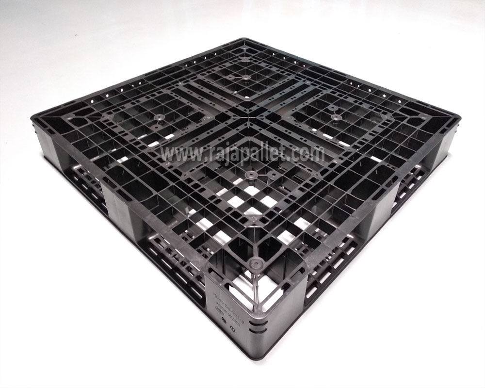 Pallet ini segaja didesain dengan menggunakan bahan plastik PPE murni sehingga ringan dan menguntungkan biaya pengiriman. Pallet ini tidak direkomendasikan untuk tatakan recking di gudang, kalau misalnya akan digunakan untuk racking sebaiknya menggunakan pallet racking Rajapallet.