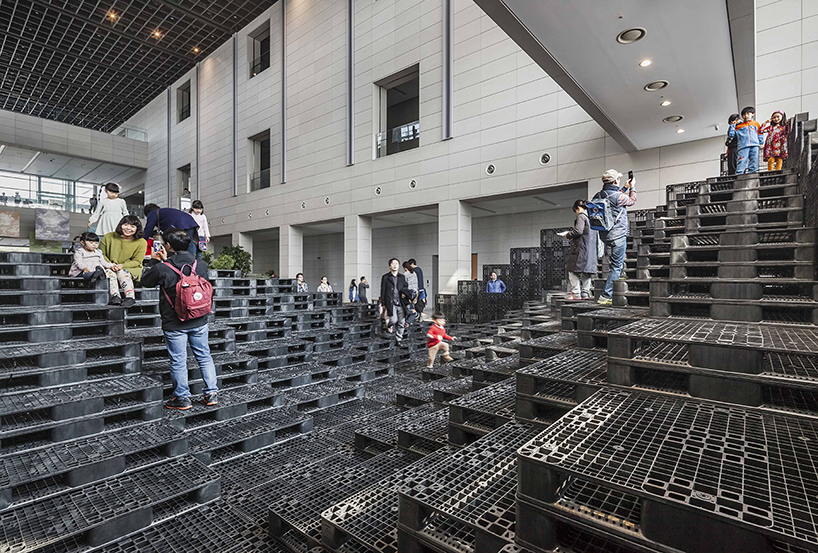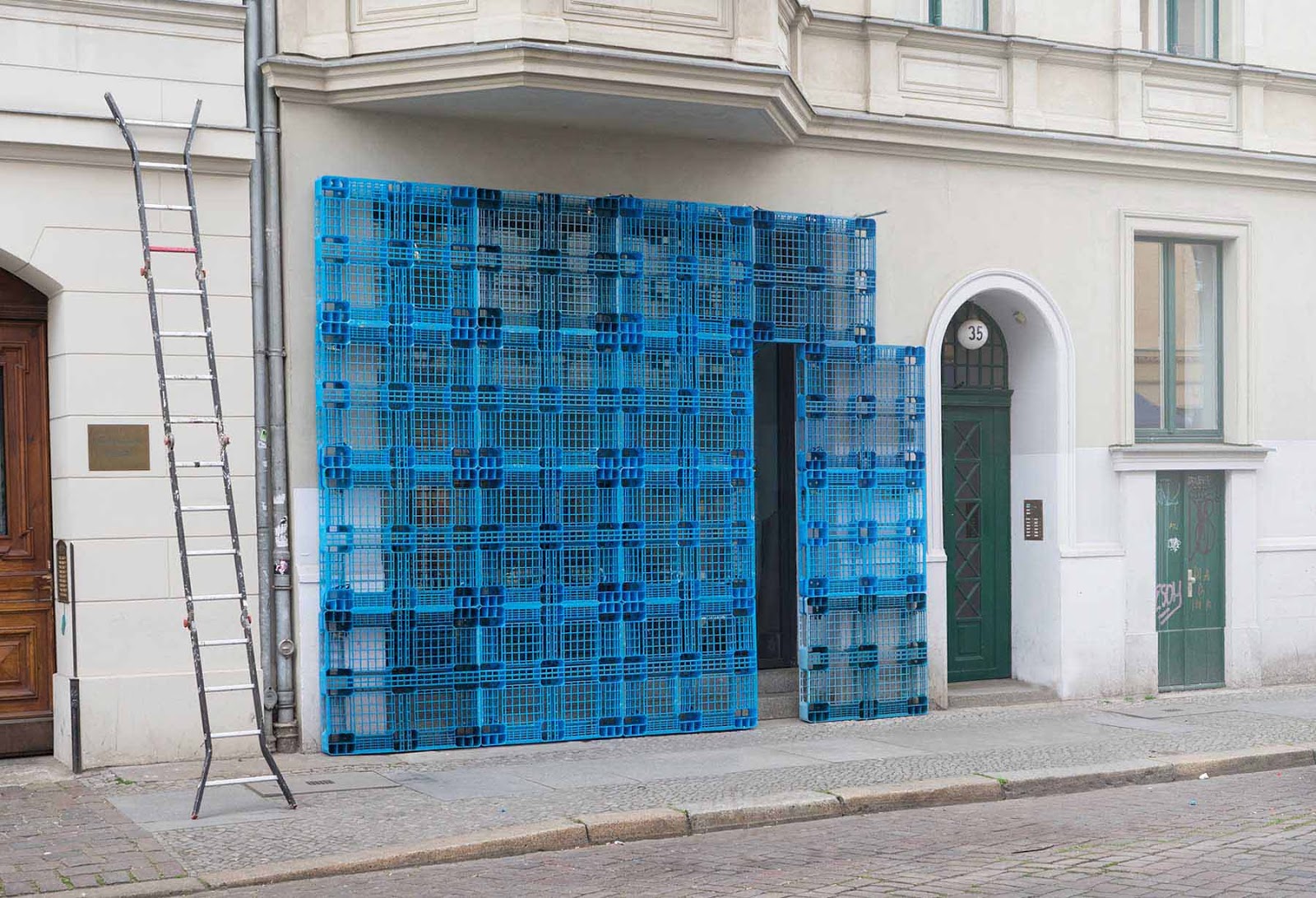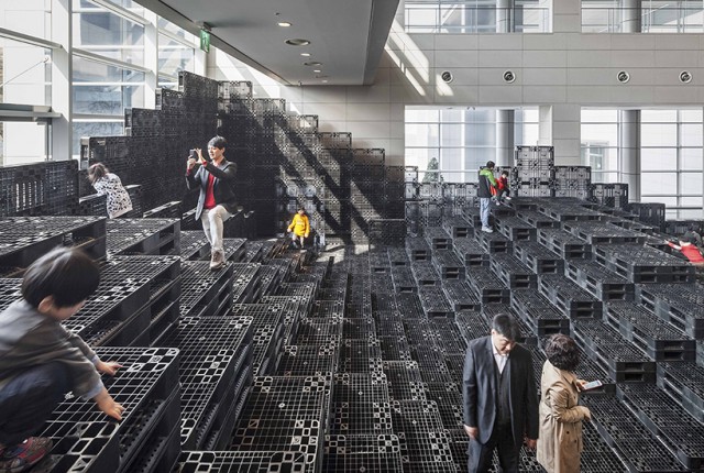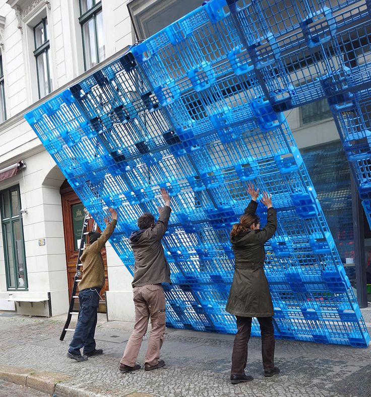 Mungkin Anda pernah melihat dinding seperti ini, tapi coba perhatikan, dinding ini ternyata dari pallet plastik.